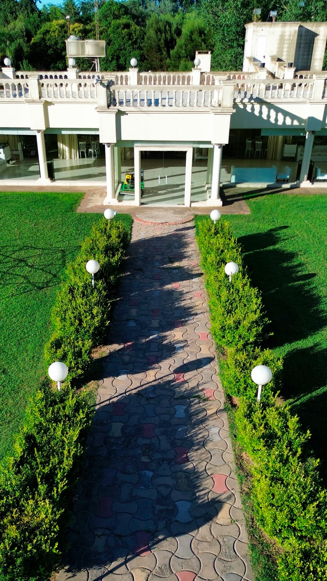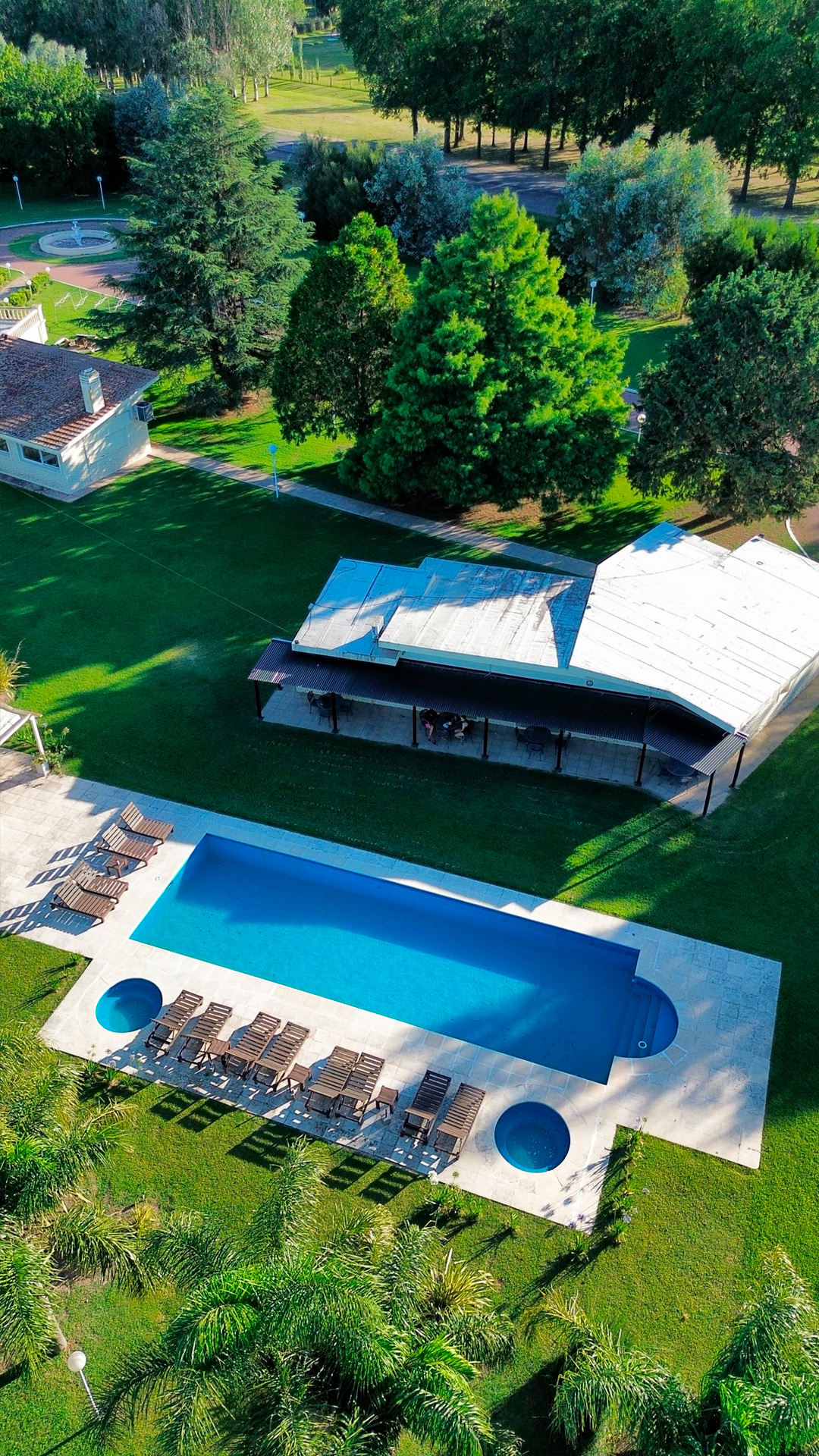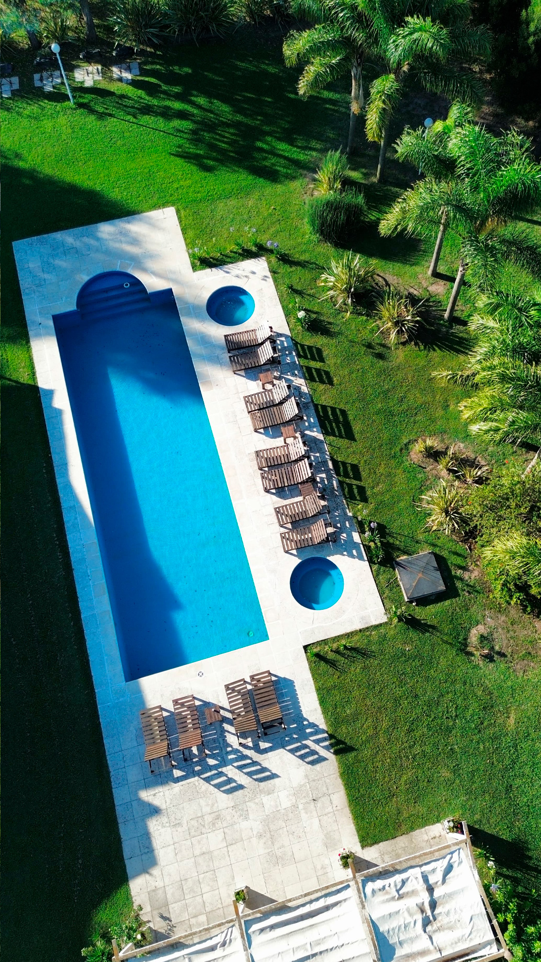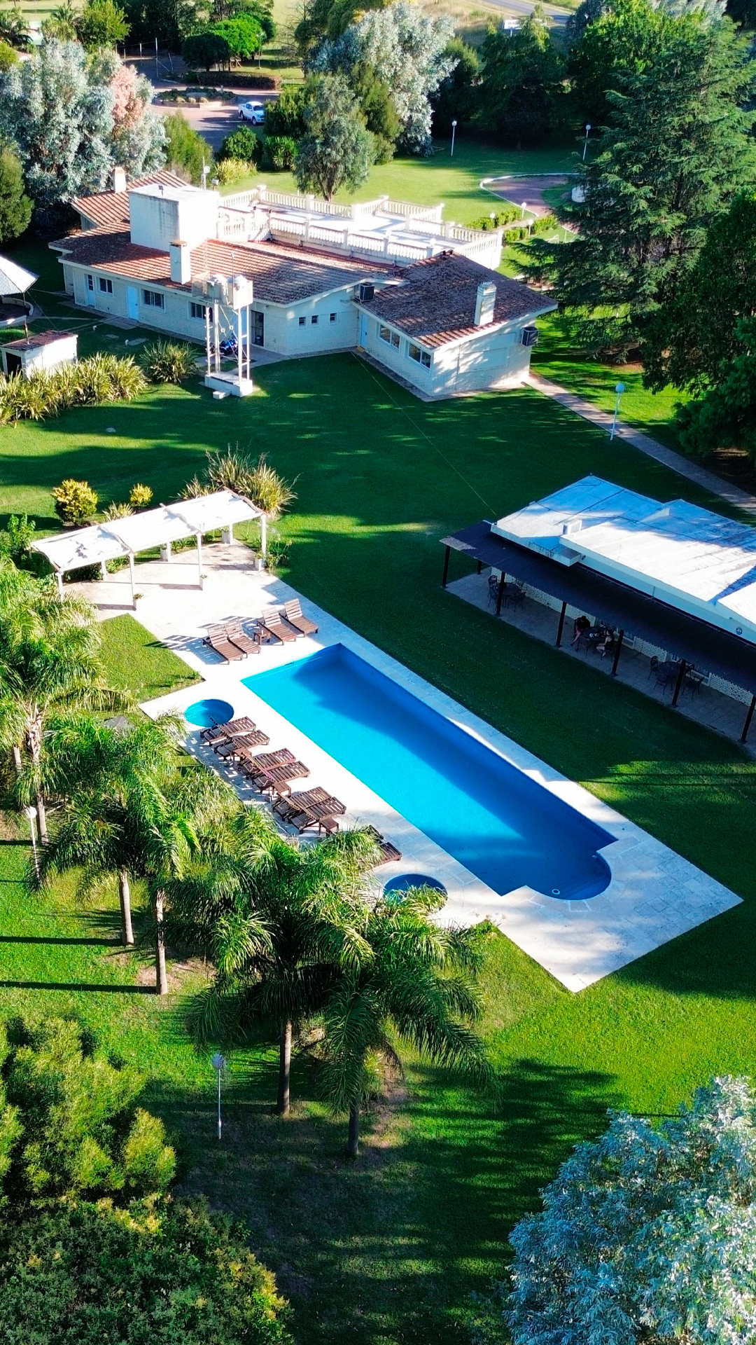 Si también te gusta disfrutar del aire libre, el predio de aproximadamente 3 hectáreas, tiene una amplia arboleda, parrillas y fogones en el exterior y una gran piscina con dos minipiscinas para niños.